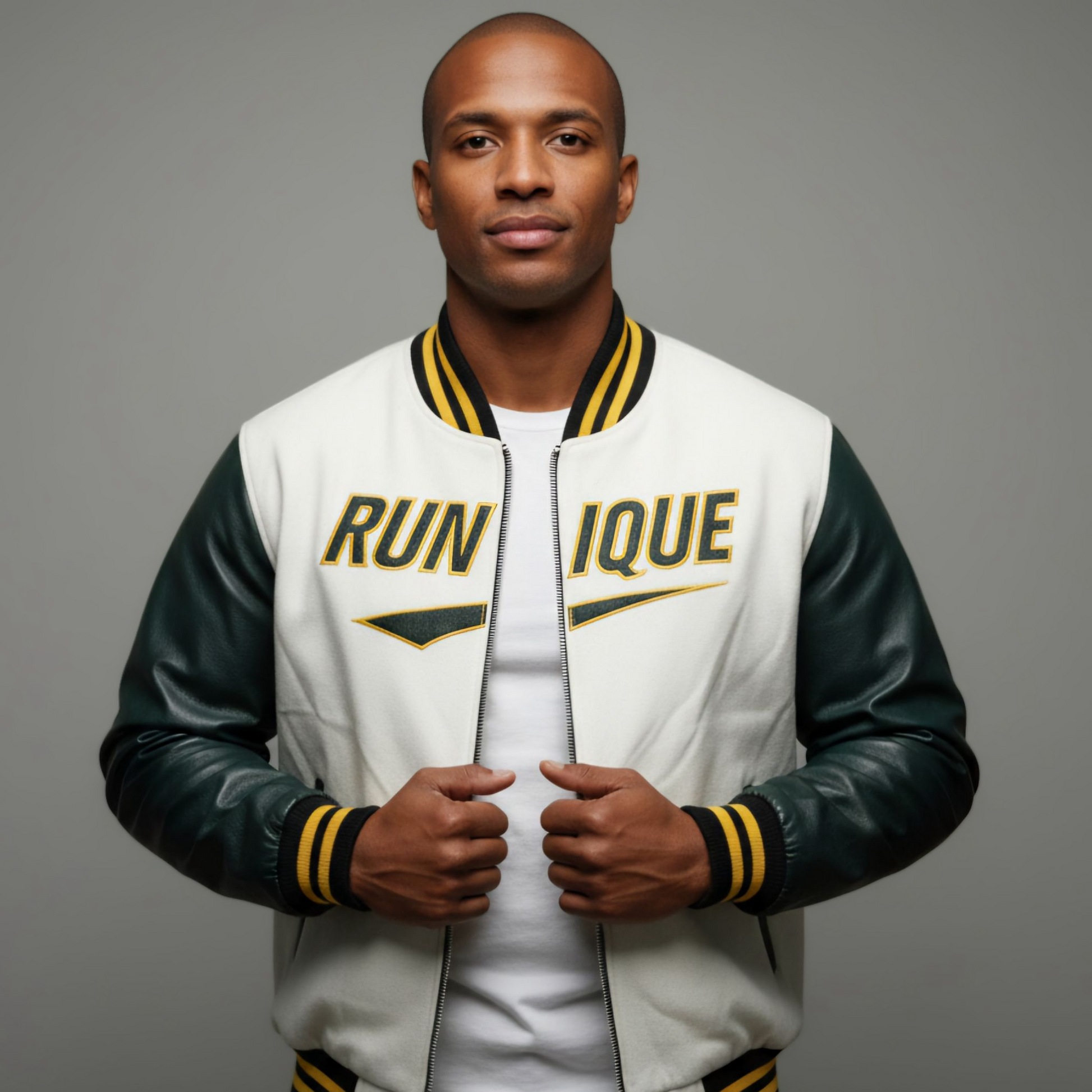 RUNIQUE Heritage Varsity Jacket | White & Green