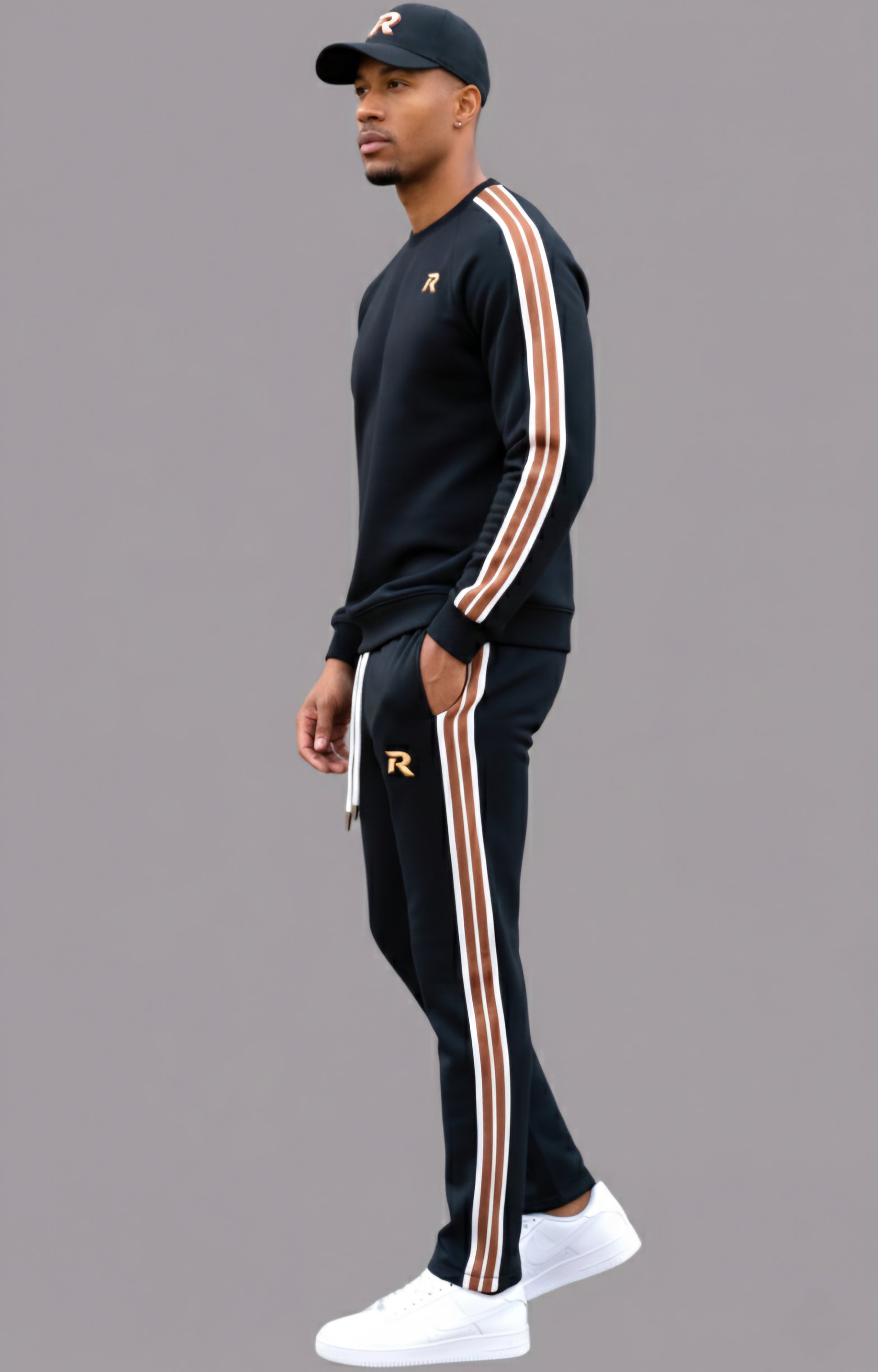 The RUNIQUE Signature Tracksuit blends athletic performance with refined street style. Crafted in a deep Black tone, this set reflects strength, balance, and long-term vision — core values of the RUNIQUE brand.